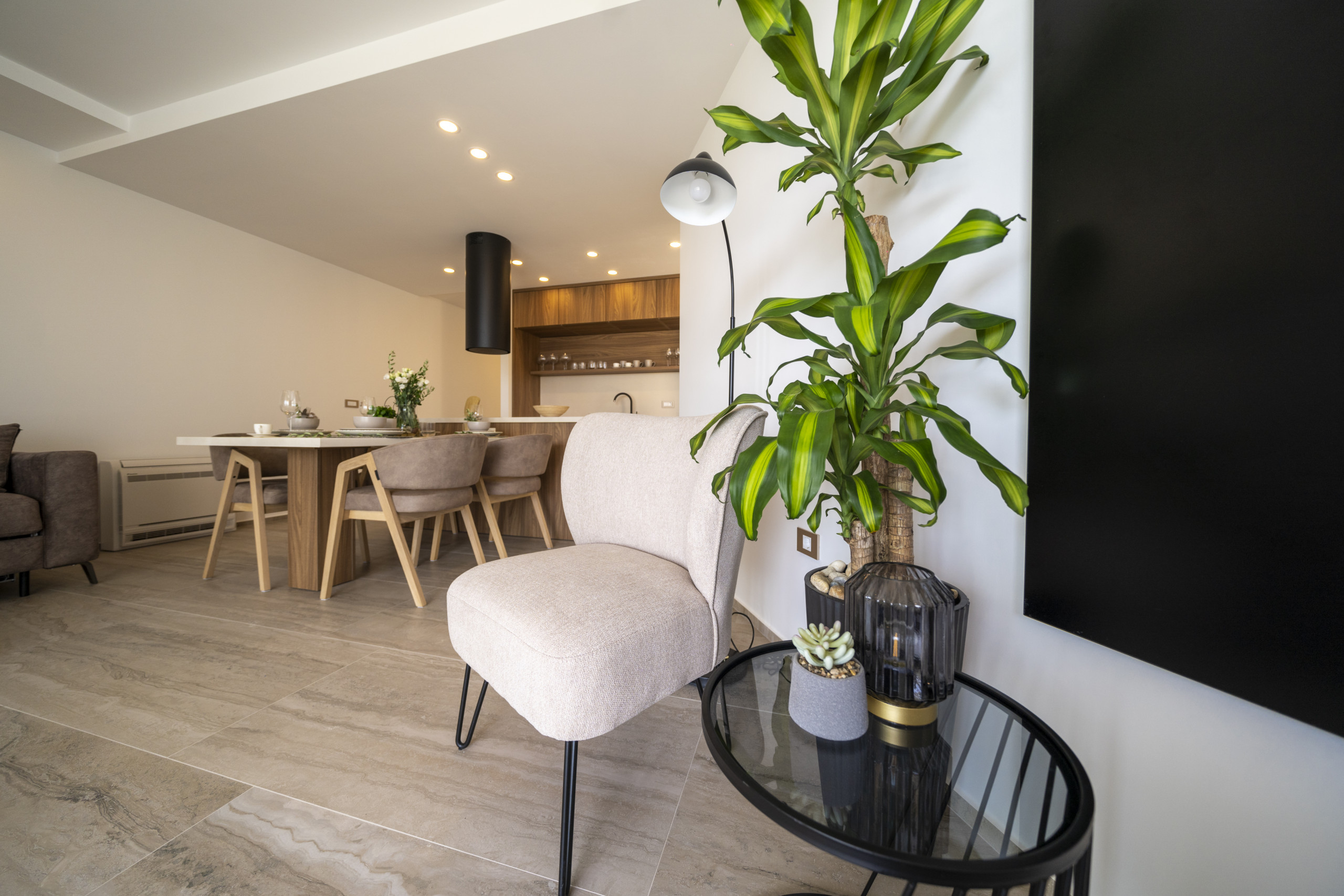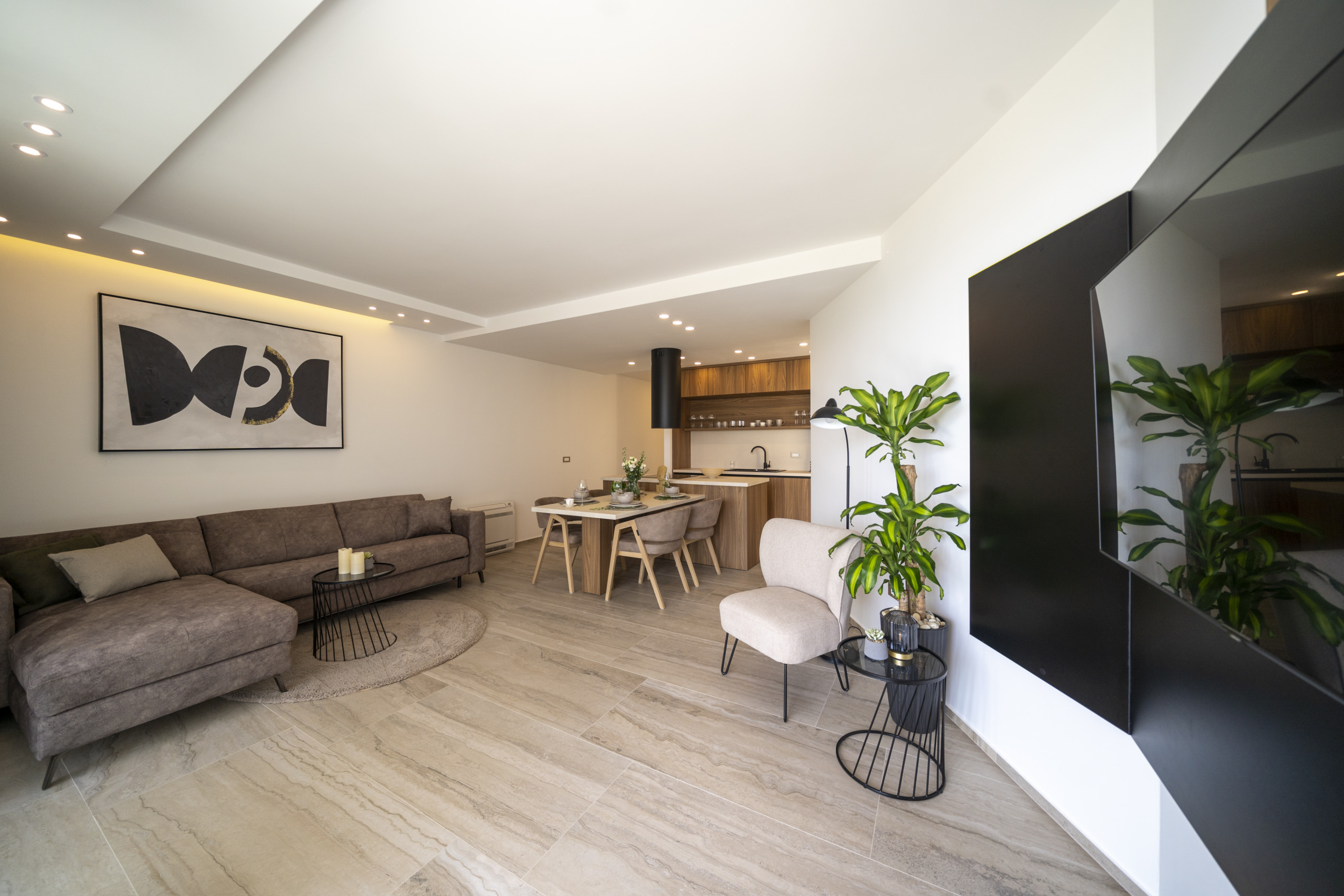 Unsere fünf luxuriösen Apartments wurden sorgfältig gestaltet, um die perfekte Atmosphäre für Ihren Aufenthalt zu bieten. Dieses wunderschöne, moderne Apartment umfasst eine Küche mit allen notwendigen Annehmlichkeiten zum Kochen und Essen, einen Wohnbereich mit Sofa und Smart-TV, zwei Schlafzimmer mit komfortablen Kingsize-Betten, ein Badezimmer mit grundlegenden Toilettenartikeln und einen Balkon, der trotz der neuen Bauweise in der Nähe immer noch charmant ist.