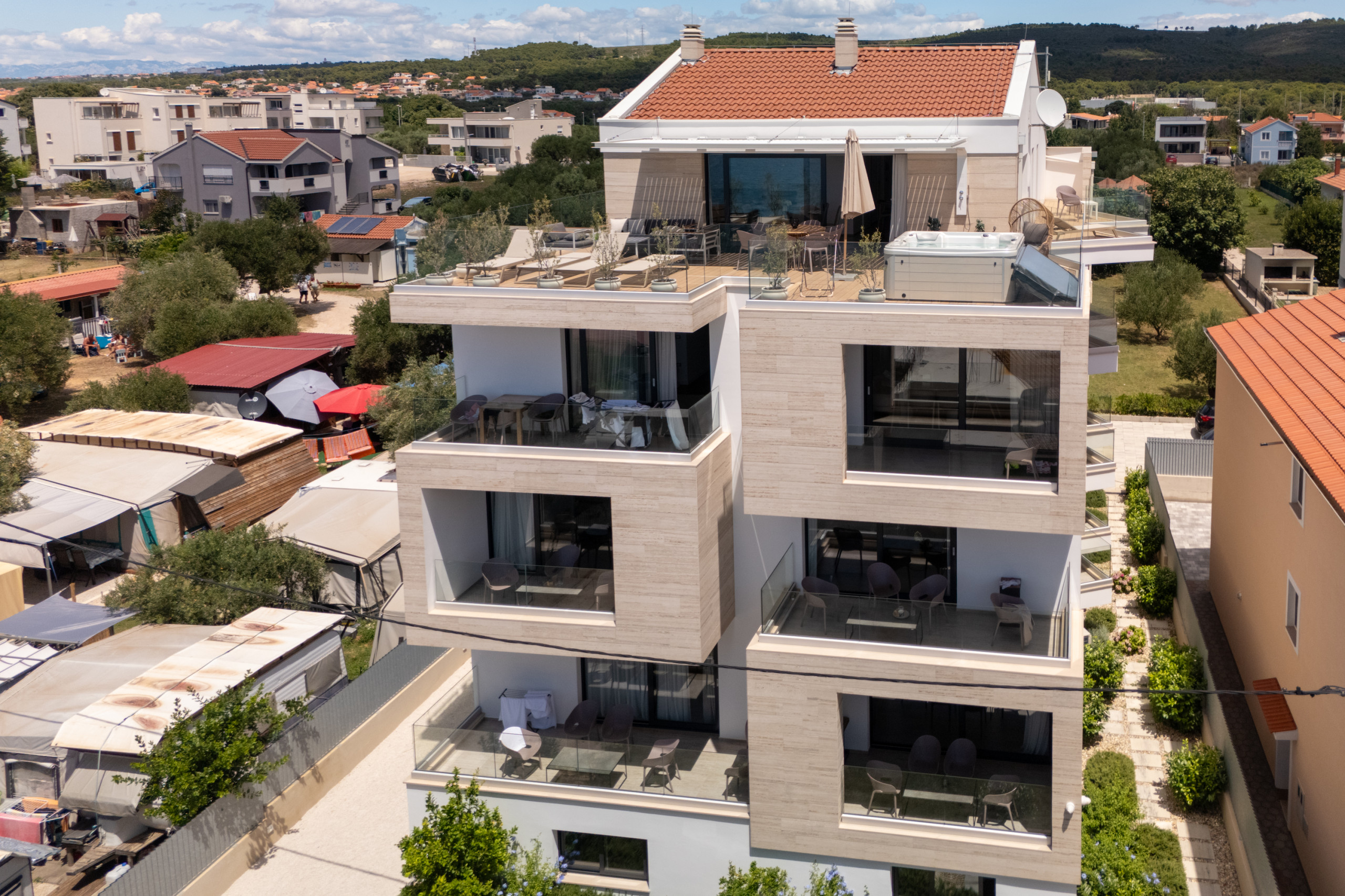 D-Art Villa ist eine exklusive Ferienimmobilie, ein brandneues Luxusferienerlebnis in Bibinje-Kroatien. Unser Anwesen verfügt über 5 moderne und stilvolle Wohnungen, die alle mit den besten Eigenschaften eines neuen Zeitalters smart house.