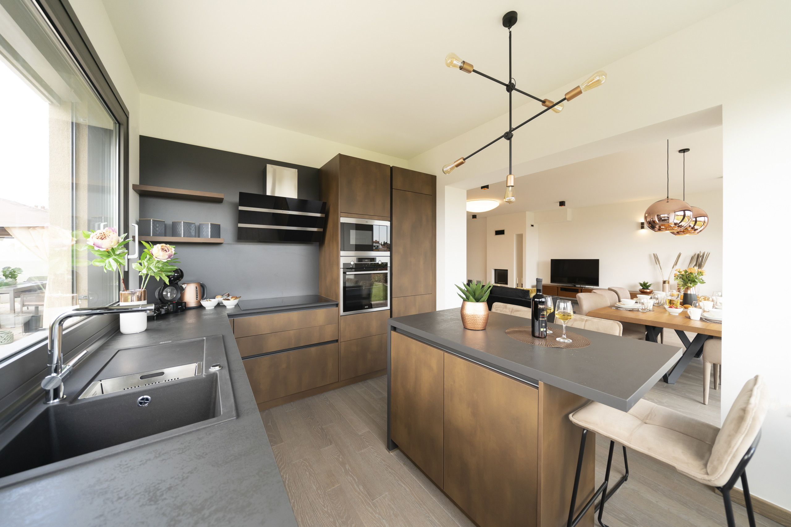 In the induction independent kitchen, refrigerator, oven, freezer, dishwasher, kitchen utensils, coffee machine and toaster are provided.