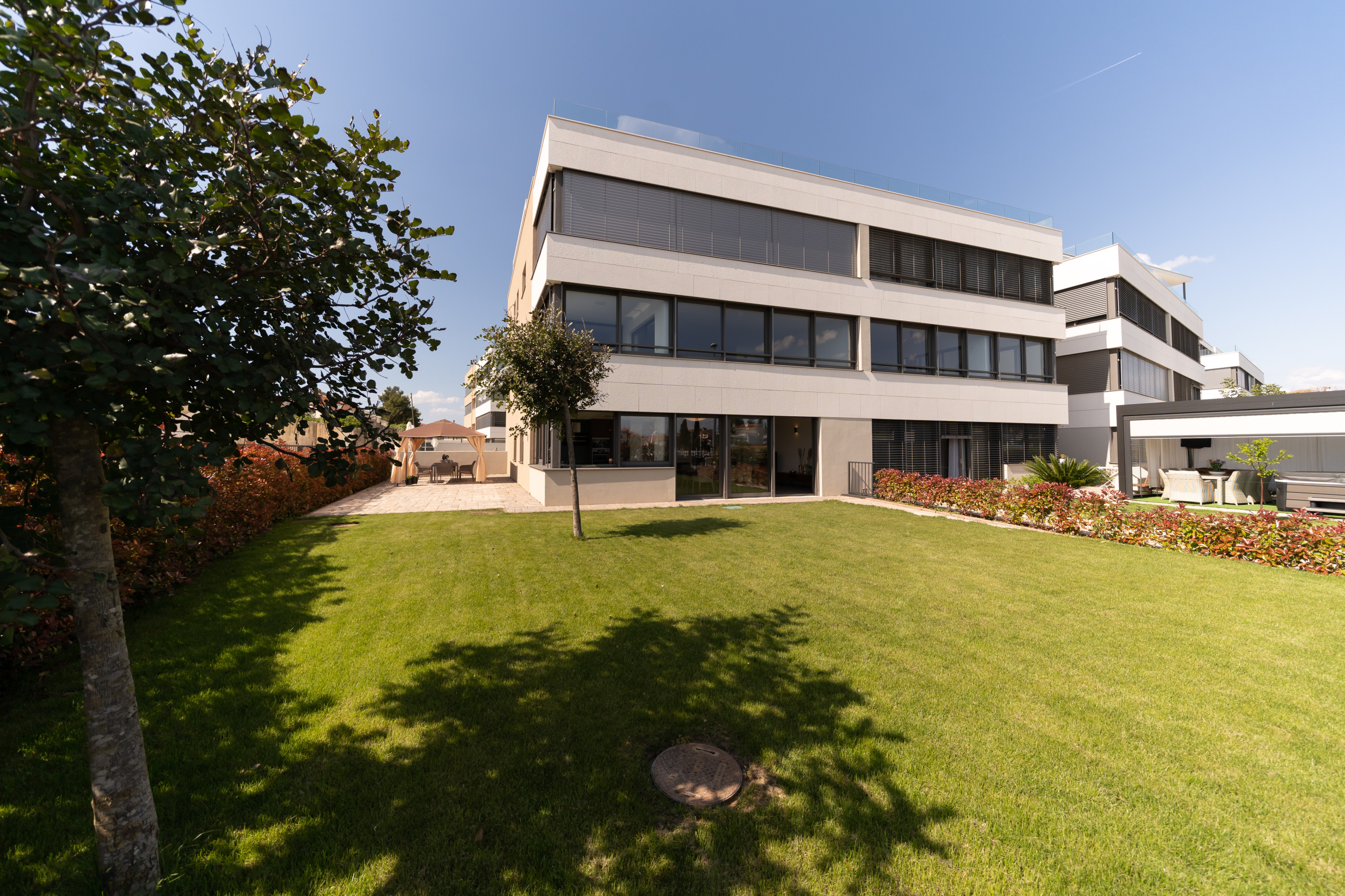 The accommodation is equipped with the following items: lift, garden, garden furniture, fenced garden, terrace, washing machine, dryer, iron, safe, internet (Wi-Fi), hair dryer, balcony, heat pump, air conditioning throughout the house, communal swimming pool, open-air parking the same building, 1 fan, 1 TV.